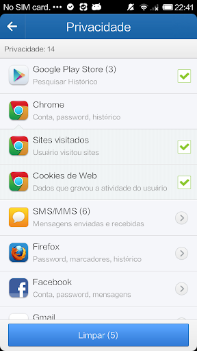 Aplicações de privacidade são importantes para todos os usuários de Android. Uma vez que usa um dispositivo inteligente, ele sabe todas as informações pessoais, incluindo SMS/MMS, dados do navegador da web, histórico de pesquisa do Google etc. O módulo de limpeza do histórico do Clean Master pode executar a exclusão de mensagem e também pode apagar os dados do navegador, dados da área de transferência e do histórico de muitas outras aplicações como o Wechat, Whatsapp, Spotify, Pinterest, Line, etc.